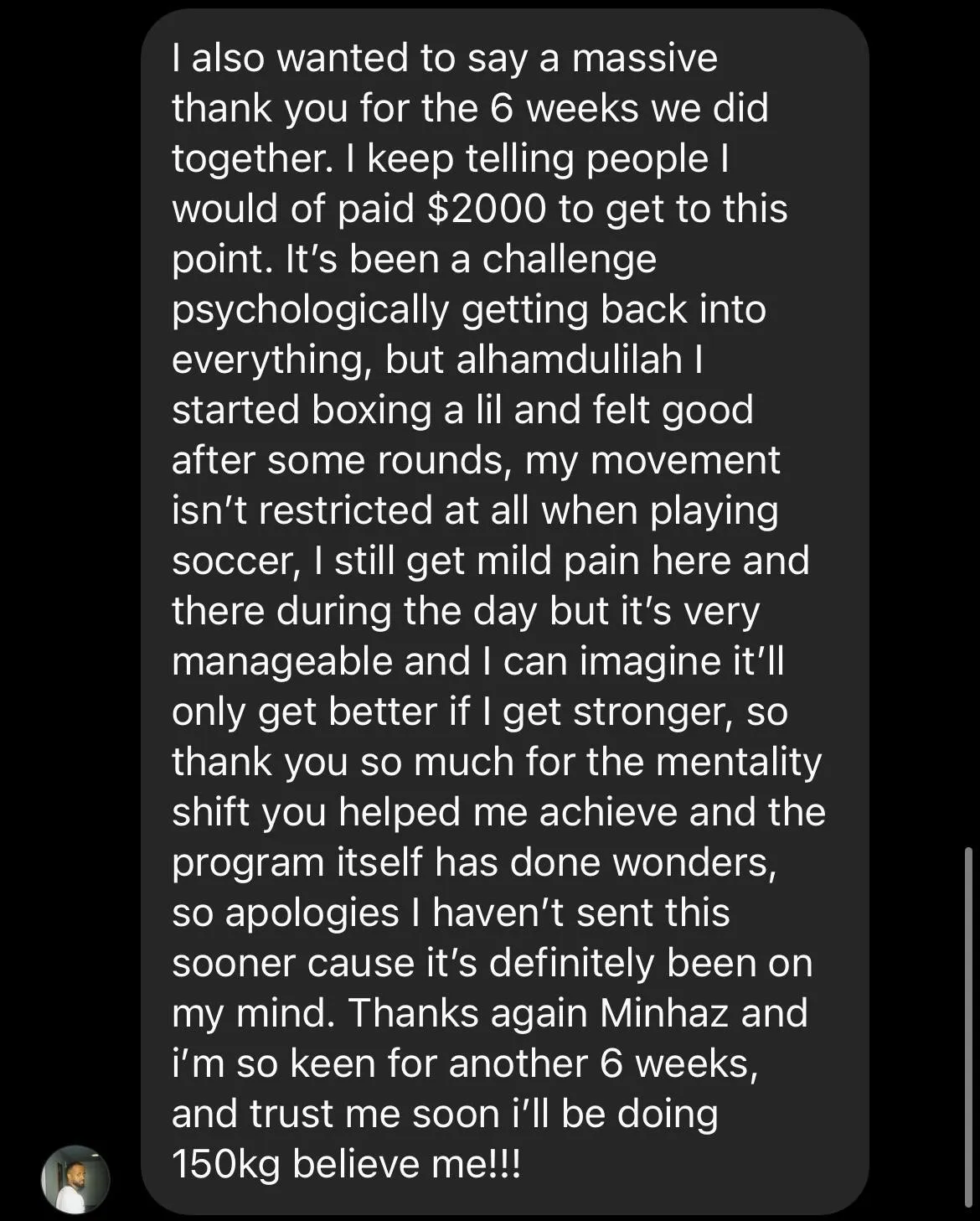 With expertise in physiotherapy and strength & conditioning, I help clients achieve lasting results.